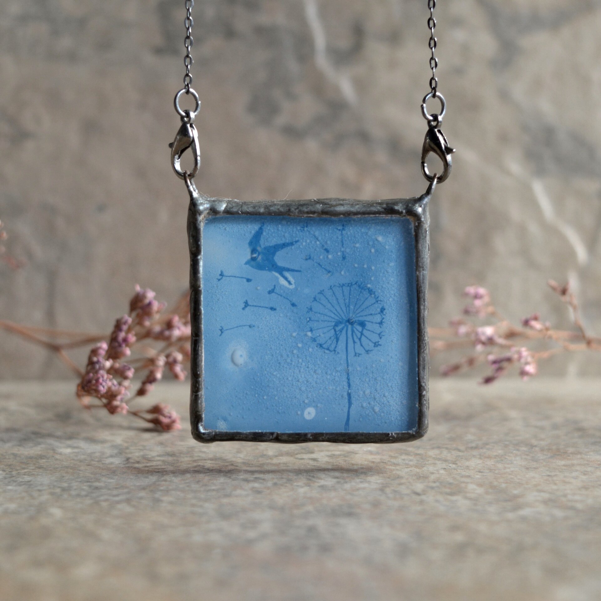 Colgante rústico con flor, Joyas artesanales únicas de vidrio reciclado